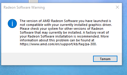 Arkadaşlar hepinize tekrardan merhaba uzun süredir bilgisayarı aygıt yöneticisinden ekran kartını devre dışı bırakıyordum. Windows Update dün kendi kendine güncelleme atmış ve ekran kartını yüklemiş şu anda 3 4 saattir oyun da oynuyorum masaüstünde YouTube'da takılıyorum herhangi bir sorunla karşılaşmadım sizce sorun ne olabilir veya ben iyi niyetlimi düşünüyorum her an patlıyabilir mi yine ekran kartı. (ayrıca Windows Update ekran kartını yüklediğinde masaüstünden AMD Radeon açtığımda şu hatayı veriyor görselde paylaşacağım)