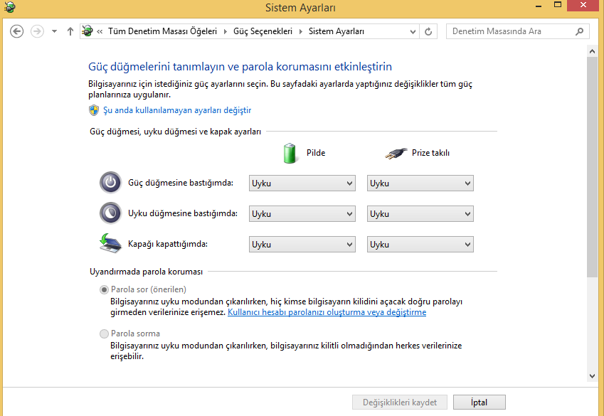 Güç düğmesi ile yapmaya çalışıyorsanız, güç seçneklerinden bu ayarları düzenleyin: