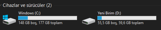 SSD'nin hızlı çalışması için en az 40 GB boş alan olması lazım.