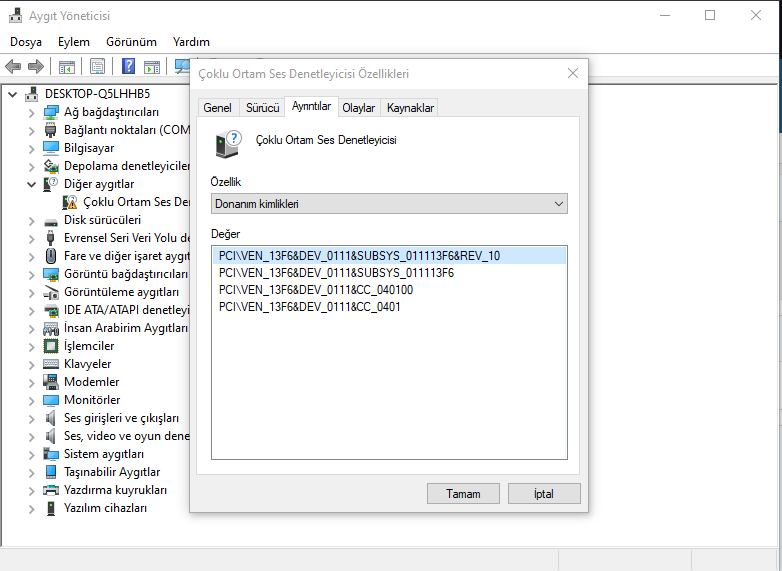 Donanım kimliklerimde aynen sırasıyla şunlar yazıyor;