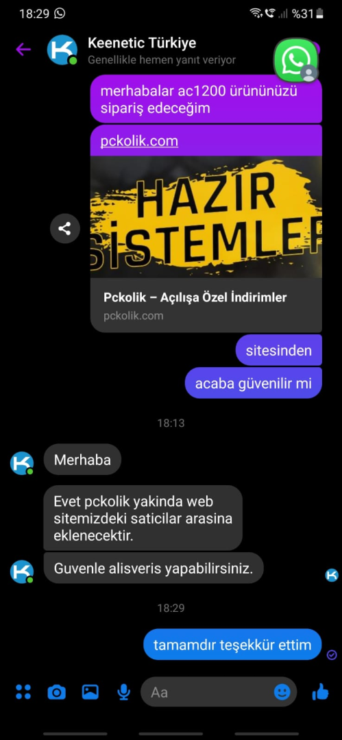 Sitesinde açılışına özel indirimler var. Site yeni, güvenirliği hakkında pek bir bilgi yok ancak satın almak istediğim ürün Keenetic marka olduğu için müşteri hizmetlerine ulaştım: