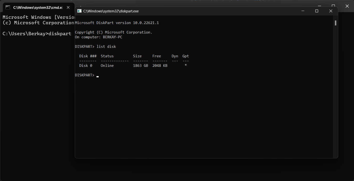 Çok daha basit bir yolu var, cmd açın. diskpart yazıp Enter'layın.