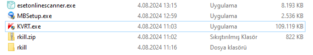 Arkadaşların dediği Kaspersky'i ve Malware'yi yaptım ben, bu ikisi tehdit bulmadı. ESET ise daha tam bitmedi diğer ikisini de yapınca yazarım yardımın için teşekkürler.