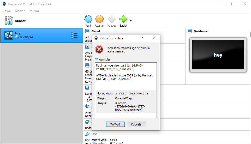 Herkese merhaba, elimde çok eski bir laptop var kuzenimden kalma PC. Bu bilgisayarın içinde sanal makine oluşturmak istiyorum ama bazı hatalar aldım.
