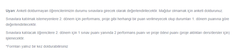 Dilekçe verip sınava girmeyeceksen o dönemden mezun oluyorsun. Yani yapmana gerek yok.Arkadaşlar, ben de biliyorum zorunlu fakat bildiğiniz üzere lisede 2. dönem sınavları isteğe bağlı. Aynı şekilde performans notları da isteğe bağlı kalabiliyor mu?