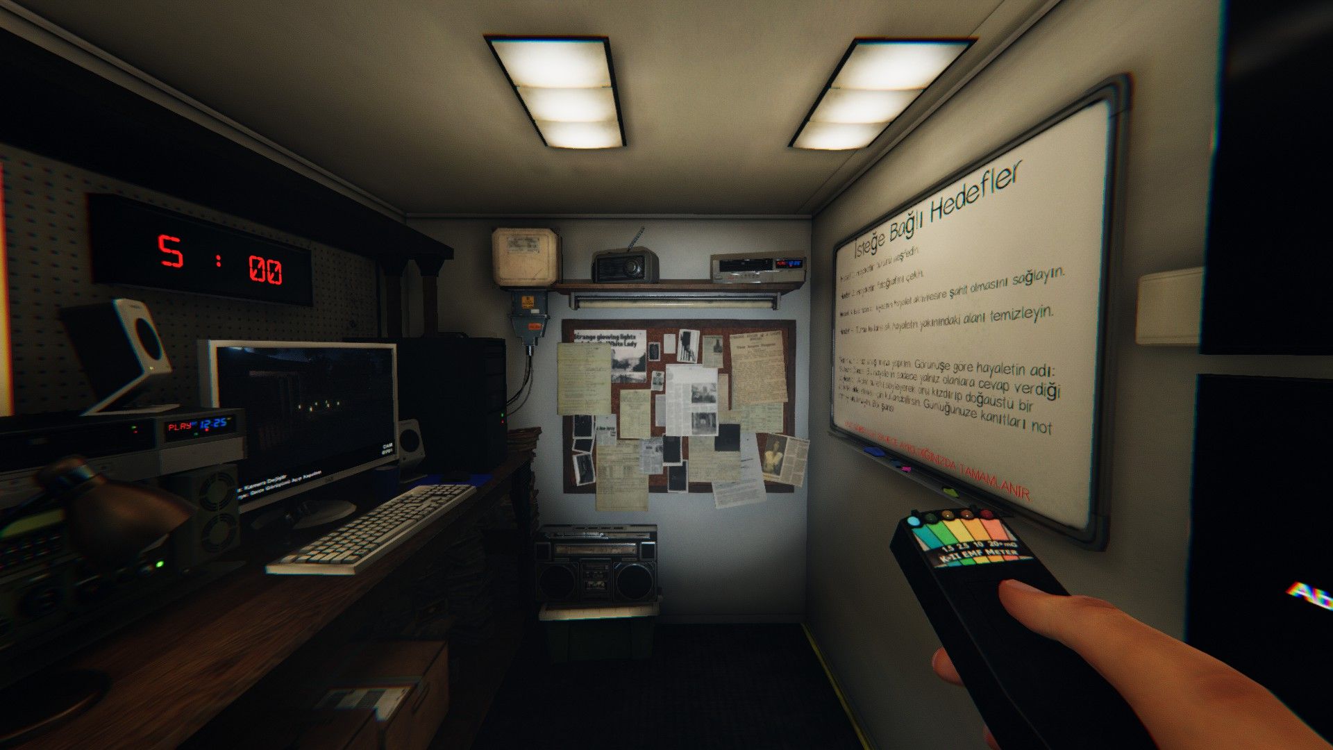 Seviye 5 EMF ölçer. Eğer görevlerinizde "EMF okuyucu ile doğaüstü olayların kanıtlarını bulun" görevi var ise EMF ölçer cihazının 2. seviye olması görevi tamamlamaya yeterlidir.
