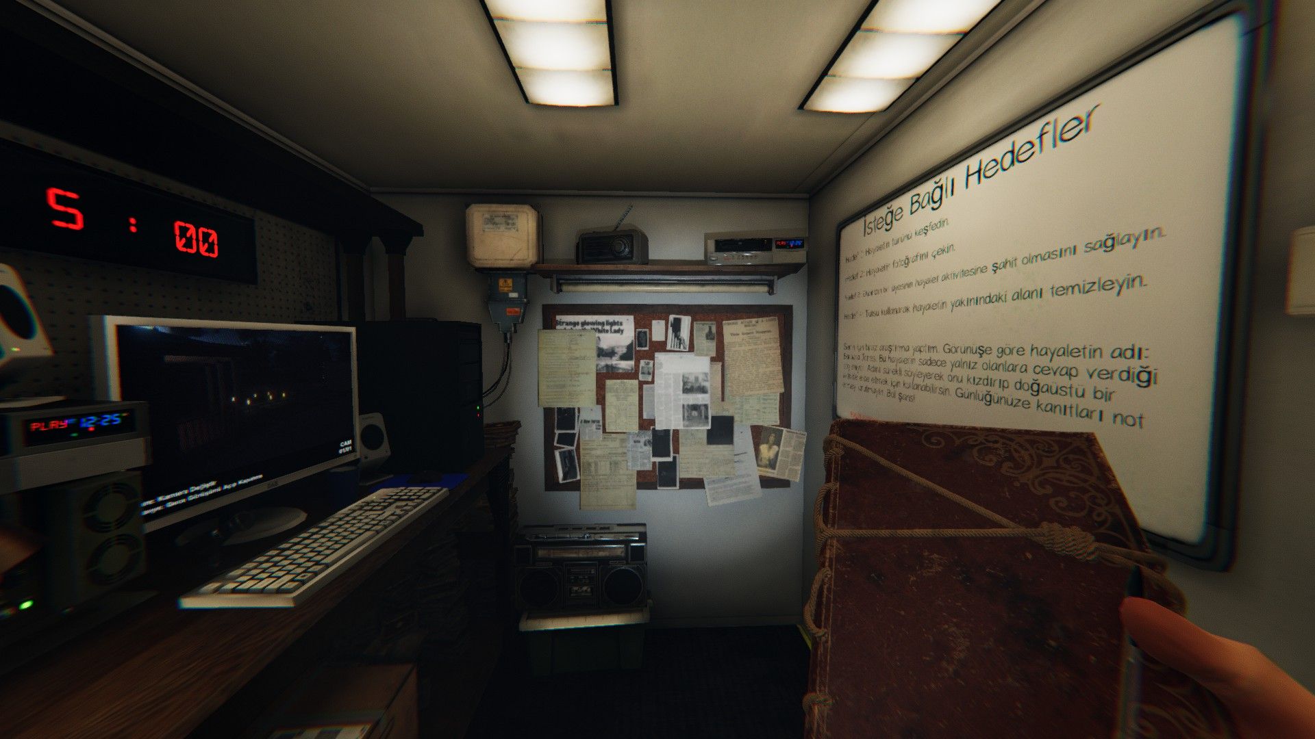 Üstüne yazı yazılmış hayalet defteri. Eğer hayalet bu deftere yazı yazarsa "J" tuşu ile günlüğünüzü açıp kanıtlar kısmında "Hayalet Defteri" kanıtını işaretlemelisiniz. Hayaletin türünü belirlemenize yardımcı olacaktır.