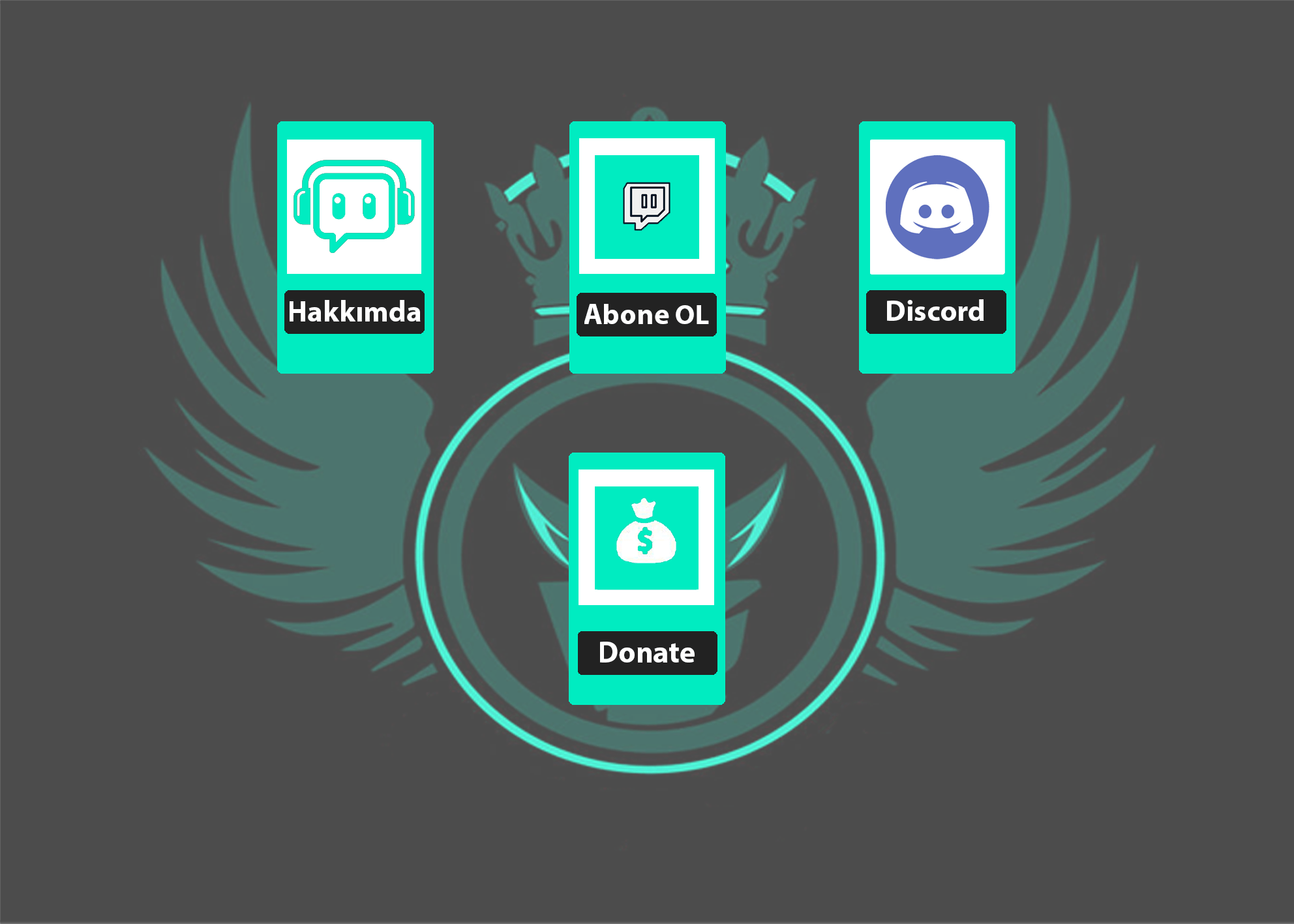 Bu tarz bir şey yapılabilir. Arkaplandaki logoyu şuan öylesine koydum örnek olması için. Logo yapılabilir ve bu şekilde ufak saydamlıklar eklenebilir. Bir de panel altındaki Discord, Abone Ol v.s var. Onlara da bu ekleyeceğiniz arkadaki şeffaflaştırılmış logoyu yan tarafına koyabilirsiniz yazıların veya herhangi bir yerine size kalmış.