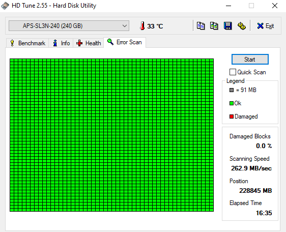 HD Tune ile Error Scan yapın. Quick Scan kapalı olsun. Bad Block var mı kontrol edelim.