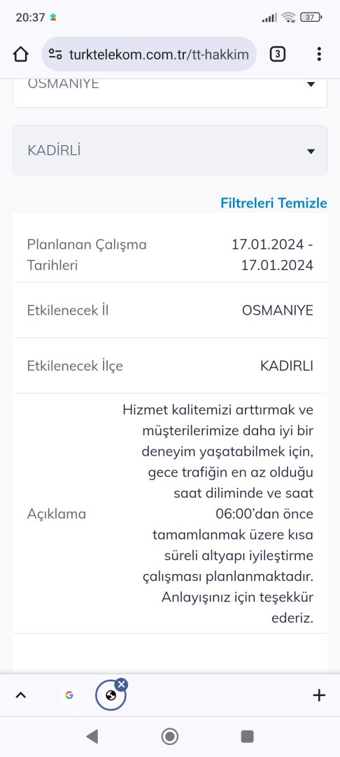 Abiler ablalar selam olsun sizlere, benim bir sorunum var bilmediğim için sizlere sormak istiyorum. Dördüncü senenin içerisine girdim Türk Telekom ADSL kullanıcısıyım, altyapı en fazla ADSL veriyor. Dün telefonuma bakım olacağına dair mesaj geldi, planlı çalışmalarda görünüyor ama detay tam verilmemiş, müşteri hizmetleri size gelen mesajı göremeyiz diyor başından geçen ya da bilen birisi yardımcı olursa sevinirim. Bu gelen mesaj acaba altyapim VDSL geliyor olabilir mi?