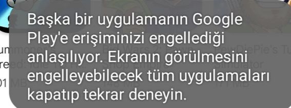 Play Store'da başka bir uygulama erişim engelliyor