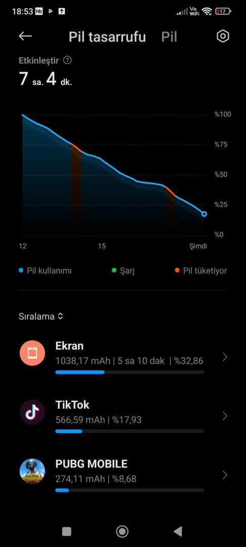 Telefonlarda genel olarak en fazla ekran şarj yer zaten o normal gördüğüm kadarı ile koyu mod kullanıyorsunuz ve 60 Hz yenileme ile 5 saatlik bir ekran süresi almışsınız bana normal geldi. Belki bu süre 1-2 saat daha fazla olabilirdi ama tahminimce Pubg Mobile oyunu sırasında ekran şarj kullanımını etkilemiş. Ek olarak Pubg Mobile gibi oyunlar ve HD videolar şarjı daha hızlı tüketir.