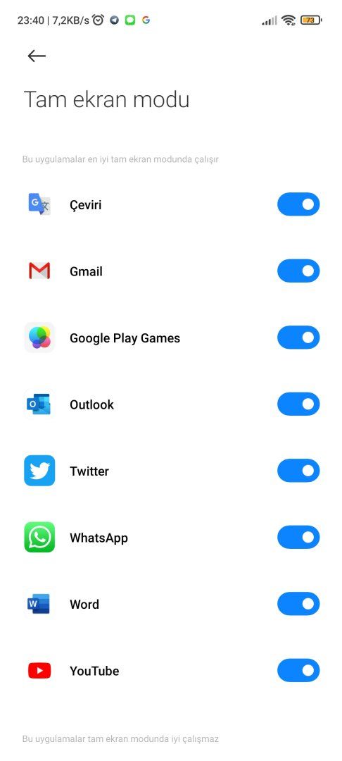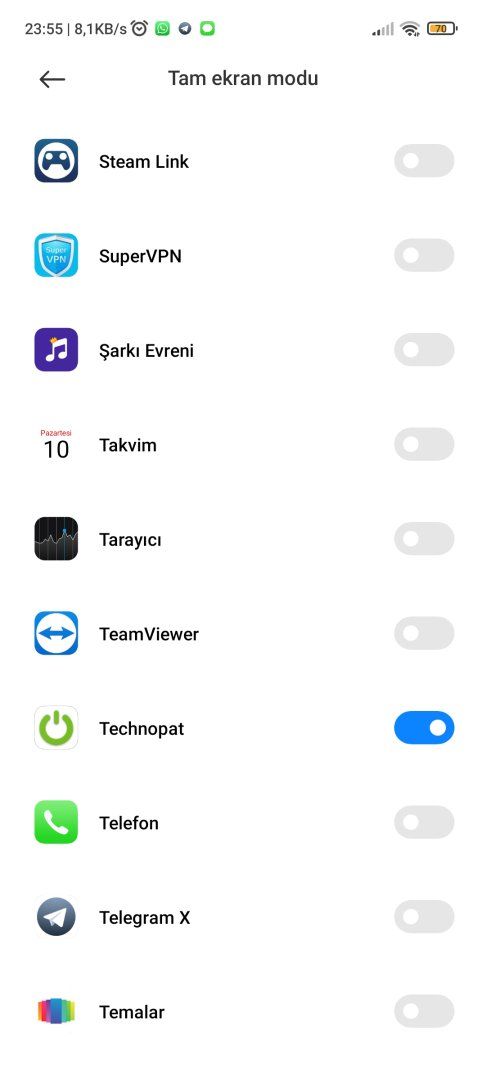 Telefon tam ekran olmuyor, Sanki ekranı kısıtlanıyormuş gibi geliyor. Kamera olmasına rağmen orada görüntü olmasını istiyorum. Nasıl yapabilirim? Ayarlardan tam ekran açık ama değişen bir şey yok.