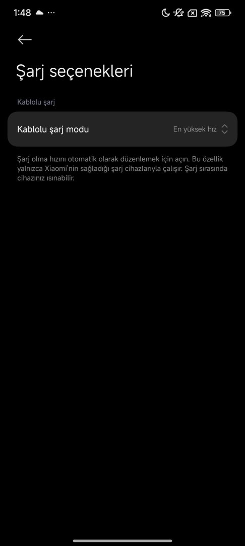 Bendeki bu ayar standart olmasına rağmen orijinal 90w şarj aletiyle 90w aktif oluyor. Duruma göre 15 A ~ 5 A arası şarj ediyor. Şarj seviyesi ve sıcaklığa göre akım değişiyor. En hızlı modu denemedim, çok ısınsın istemiyorum. O modu açsam sürekli sabit hızlı akım mı verir acaba?