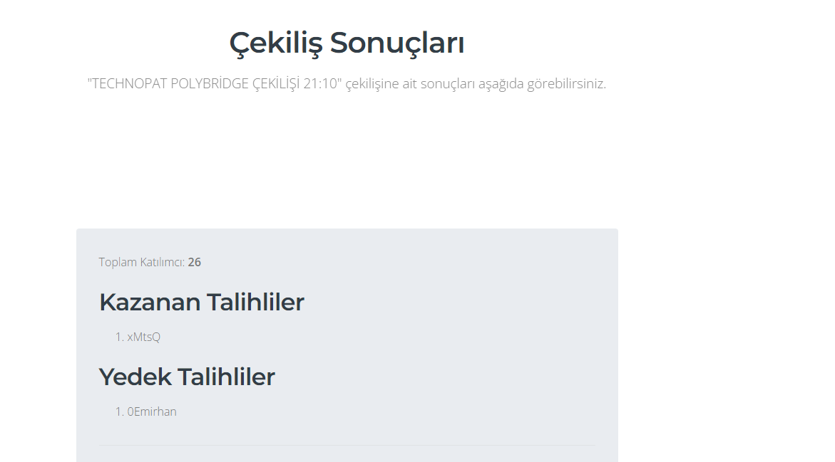 Kazanan @xMtsQ Steam profil linkinizi 10 dakika içerisinde göndermeniz gerekmektedir. Aksi takdirde Yedek talihli kişiye verilecektir.
