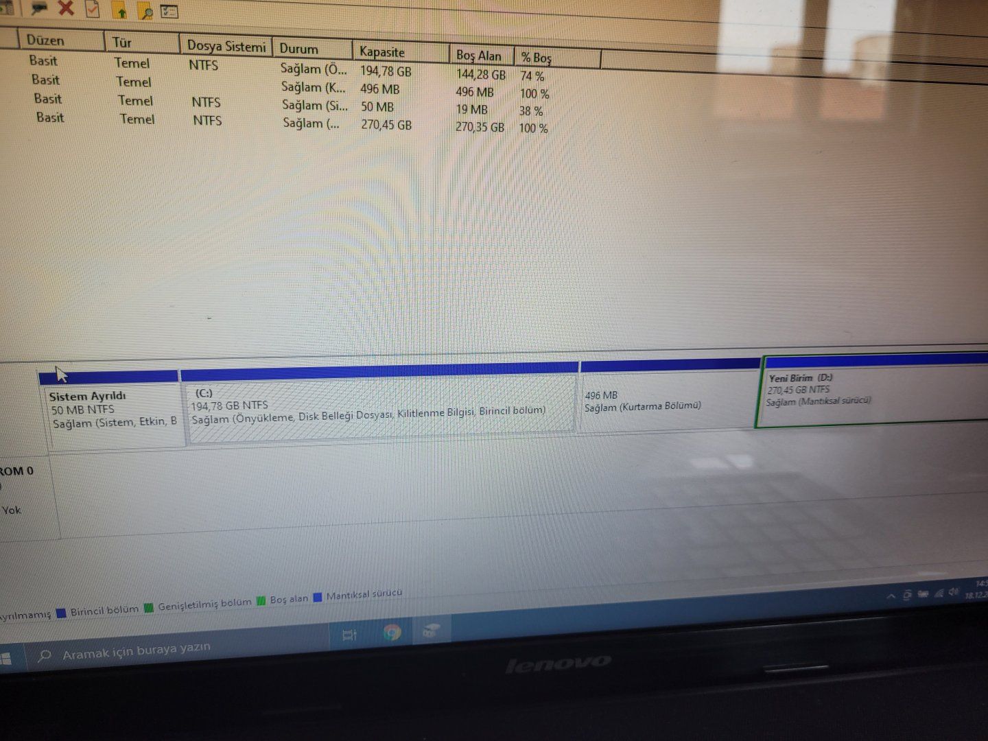 D diskine sadece root kısmını kurabilirsiniz. HDD'de zaten 4 bölüm var. O yüzden Windows'a tekrar format atın diyoruz. Daha sonrasında sizin rahatlığınız için. Diski GPT yaptığınızda UEFI olarak yazdırsanız da bir şey olmuyor. Başka bir eski bilgisayarın diskini GPT yapıp öyle kuruyoruz. Ve bilgisayar UEFI değil BIOS-legacy.