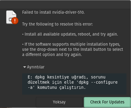 Dediğini yapmayı deneyelim ilk.Ekteki hatayı alıyorum, aynı olayı sistem güncellemesi yaparken de yaşıyorum.