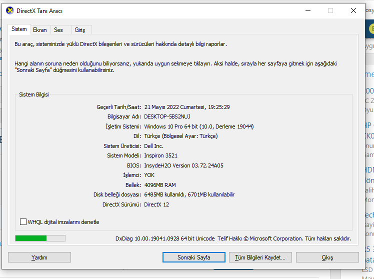 Sistem özelliklerini yazın. Ayrıca ProcMon dosyalarını paylaşın.