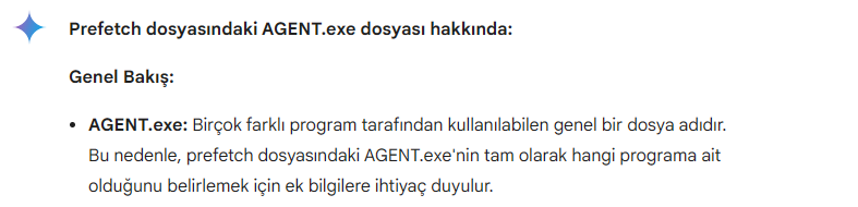 Prefetch dosyasını temizliyordum 3-4 tane agent.exe gördüm. Önceden görmedim de takmadım. Şimdi merak ettim ne olabilir bu? Malwarebytes ve Kaspersky bir şey bulamadı.