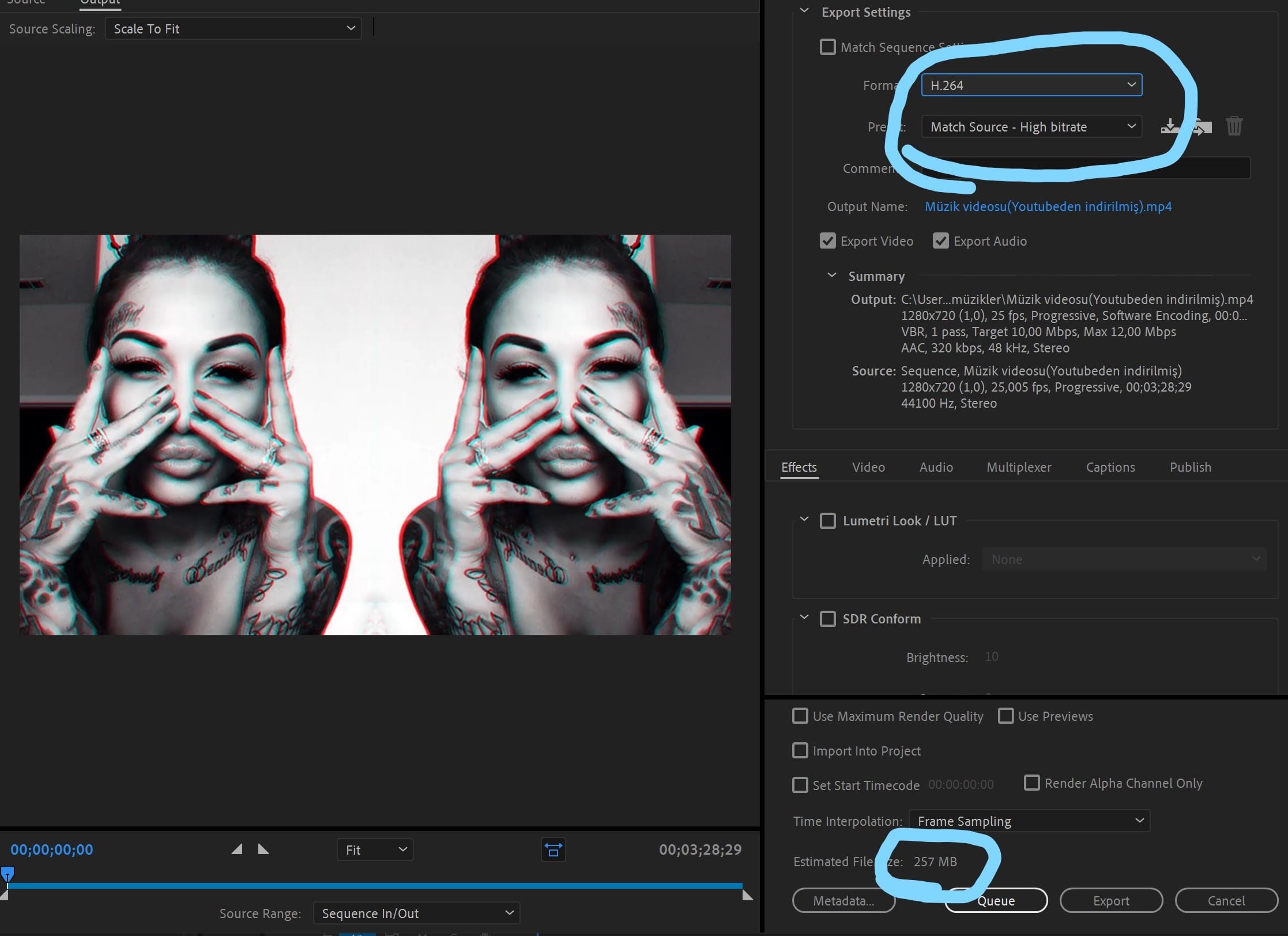 Elimde 2 adet video var. Birisi telefon ile kaydettiğim bir video yaklaşık olarak 50 Mb Premiere atıp hiçbir kırpma ve bir şey ekleme yapmadan H264 ile render alıyorum ve yeni dosya boyutum 26 Mb oluyor. Buraya kadar bir sıkıntı yok. Sıkıntı tam olarak şurada başlıyor. Elimdeki diğer videoyu Youtube'dan indirdim. Bu video müzik videosu. Dosya boyutu yaklaşık olarak 50 Mb. Premiere atıp hiçbir kırpma ve bir şey ekleme yapmadan H264 ile render alıyorum ve yeni dosya boyutum 260 Mb oluyor. Youtube'dan başka müzik dosyaları indirdim. Hepsinde aynı sorun var. Bunun nedeni tam olarak nedir ?