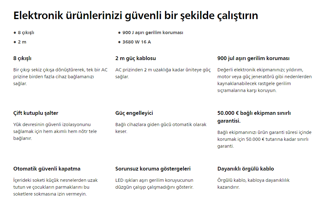 En az 5'li, anahtarlı ve kablolu priz arıyorum.