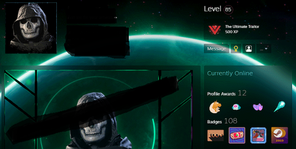 Steam'de satın aldığın şeffaf profil teması tüm profilin için geçerli olur, yalnızca bir oyuna özel değil.