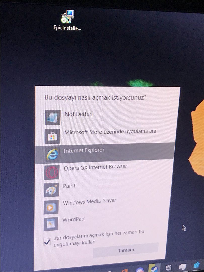 Sorun oradan seçebileceğim düzgün bir seçenek olmaması yani birlikte sadece ''not def., microsoft üzerinde uyg. ara, explorer, opera gx, paint, windows media player, word pad'' çıkıyor cidden halletmem gerekiyor anlayamadım.Bildiğim kadarıyla o sizin bilgisayarınıza göre değişiyor. Dosyayı masaüstüne alın, sağ tıklayın ve birlikte aç kısmına geldikten sonra "Başka bir uygulama ile seç"'e girin. Orada, altta her zaman bu uygulamayı bunla aç seçeneği var. Onu işaretleyin.