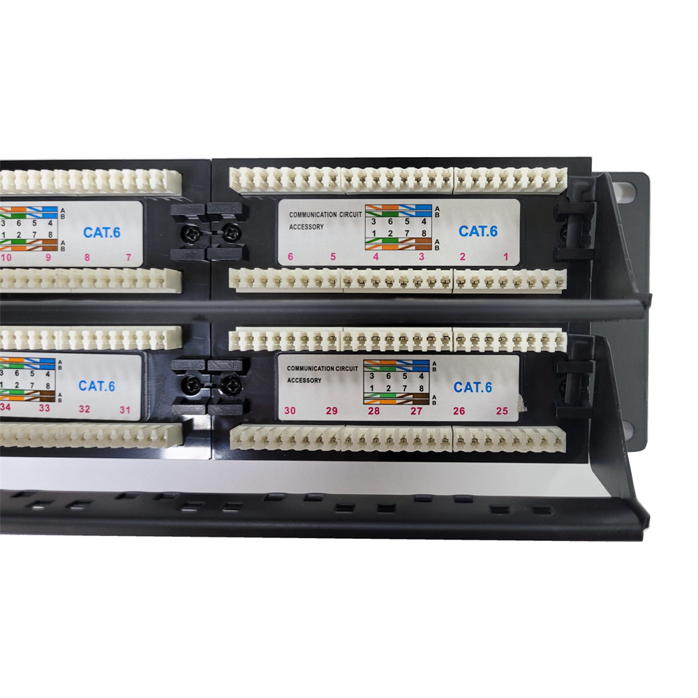 2- standart patch panel (dolu olarak gelir, kablolar tek bir parçaya işlenir)