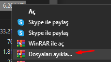 3-a) WinRAR'a sağ tıklayıp "dosyaları ayıkla..."ya tıklayın.