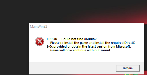 Prototype "Could not find XAudio2" hatası