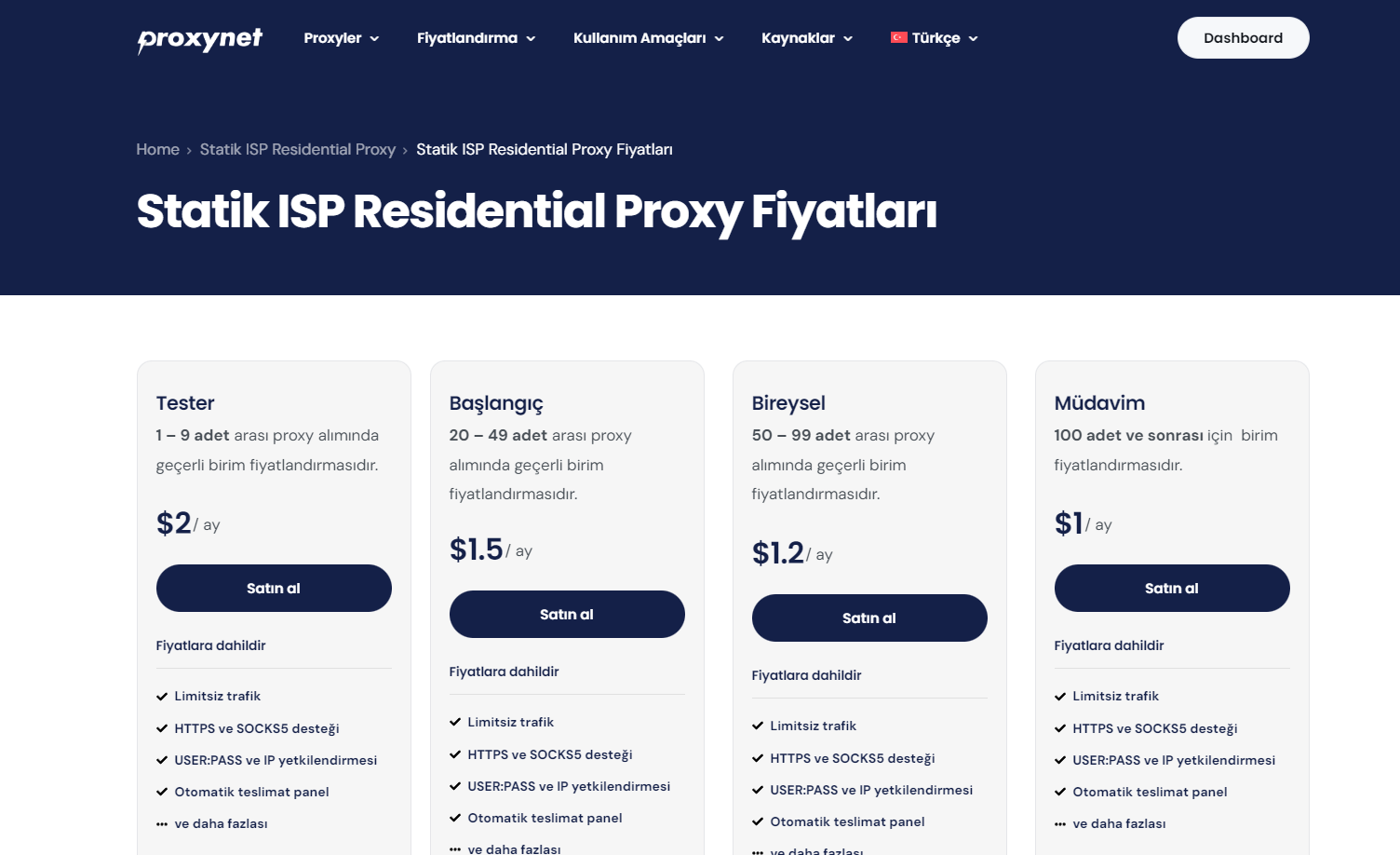 Başlıkta belirttiğim soru tam bu noktada aklıma geldi. Sonra İngilizce arama yaptım. Benimkiyle aynı ülkede ve süredeki proxy'lerin fiyatları daha makul geldi.