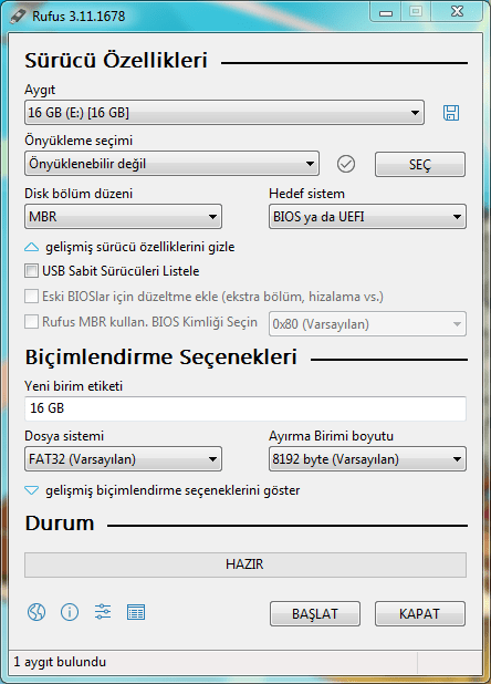 Rufus programını bu siteden indirebilirsiniz.