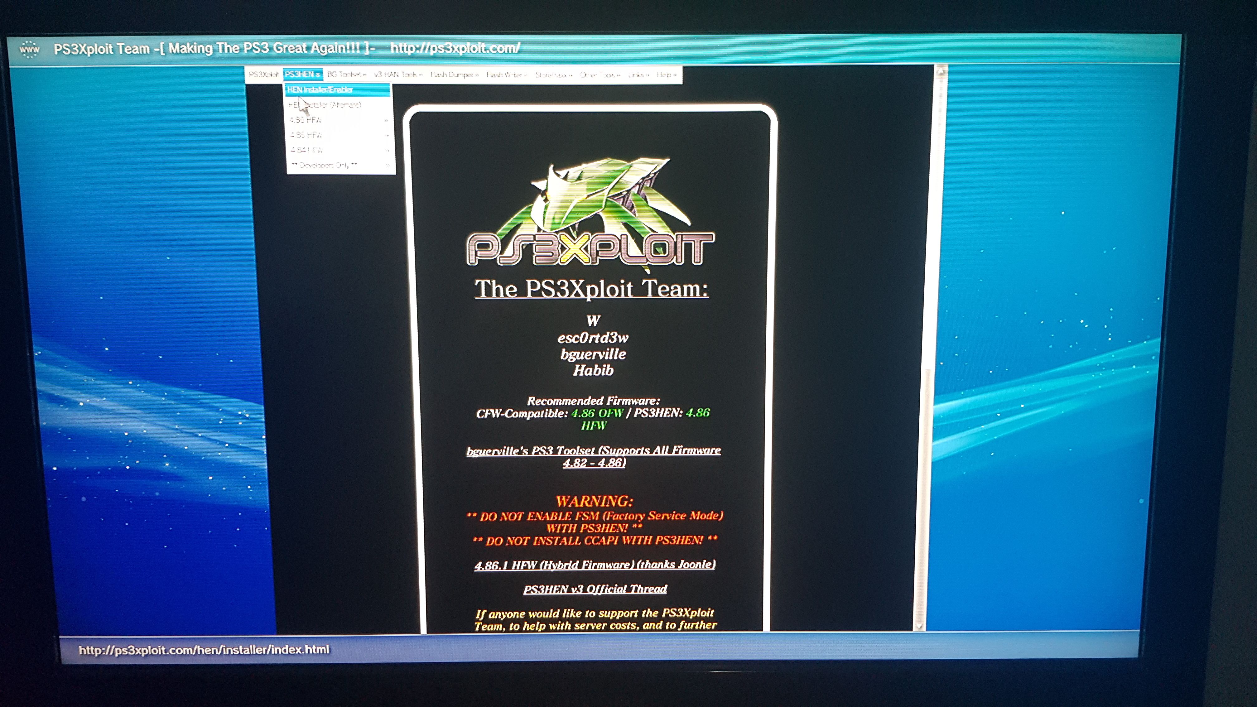 Eğer "enable hen" işlemi sırasında konsol donduysa ve hiçbir tepki vermiyorsa konsolun fişini çekip takın ve açtıktan sonra "enable hen" tuşuna basın. Eğer gene donarsa önbelleği, çerezleri, arama geçmişini ve kimlik doğrulama bilgilerini internet tarayıcısı üzerinden silip tekrar deneyin.