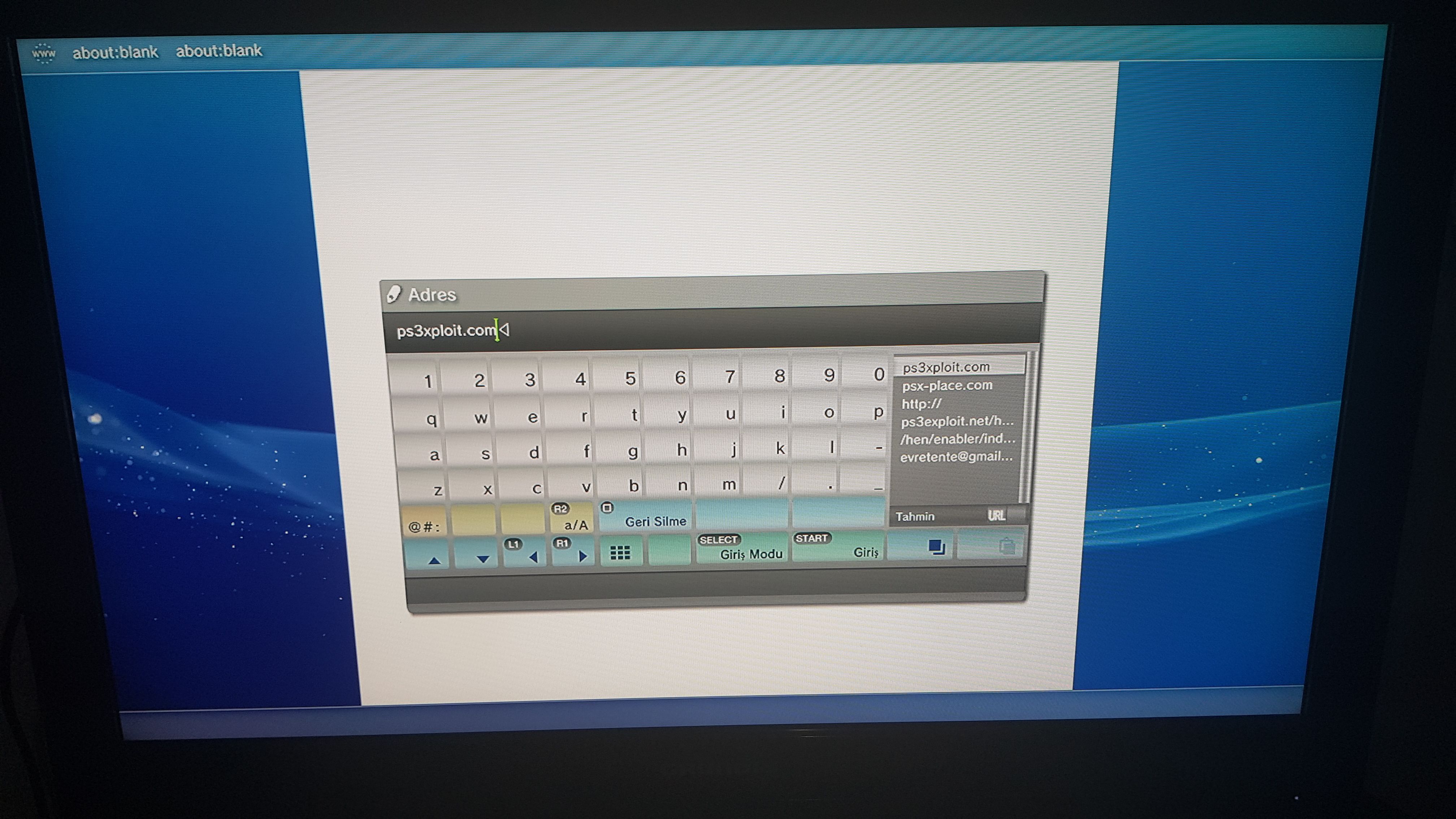 Ardından kumandadan start tuşuna basalım, karşımıza çıkan adres satırına "PS3xploit.me" sitesini girelim ve tekrar start tuşuna basalım.