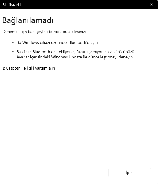 Ayrıca kolu Bluetooth'a bağlamaya çalıştım ama bu sefer de böyle bir sorunla karşılaştım