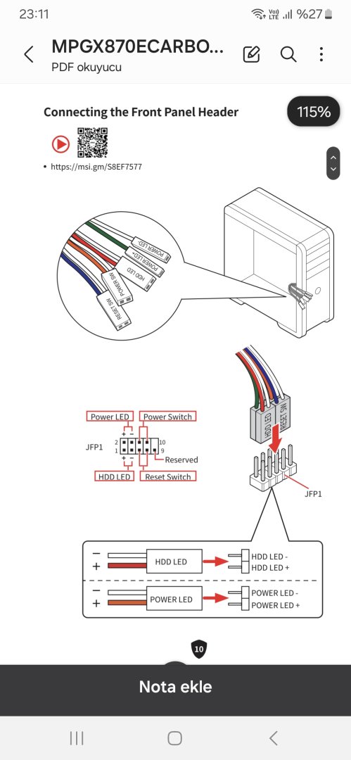 Hocam birde Power led portu ile Power switch portunda ok işaretli kısım var ama anakartta + veya - olarak işaretlenmiş kısım yok power switch tuşundaki artı eksi önemli değil galiba ama kasadaki power led kablosunda +- var anakartta yok. Fark eder mi bu? Power led kısmında +- sini yanlış taksam kısa devre yapıp sistemi yakar mı?Üzerinde +5V yazanlar RGB soketleri, baş parmağınız ile tuttuğunuz 3 pinli olan ise pompanın soketi olmalı.