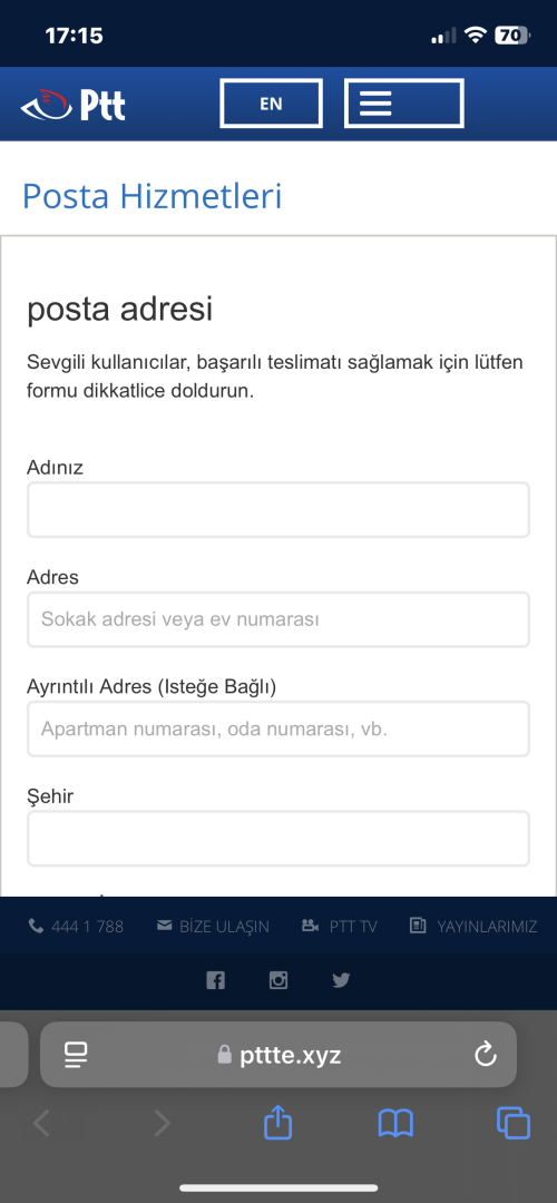 Büyük ihtimalle tuzak PTT sitesi .org , .gov uzantılı olur bu .xyz uzantılı yani beleş herkesin alabilceği uzantı yani güvensiz.