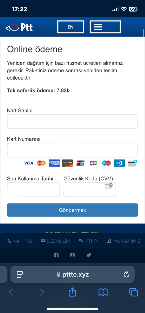 Marmara çizgi sitesinden bir kitap sipariş ettim, bugün SMS'ten böyle bir mesaj geldi. Site çok şüpheli duruyor, o yüzden pek güvenemedim. Tek seferlik ödeme falan istiyor benden bilgileri girince. Gerçekten PTT'nin bir sitesi mi bu?