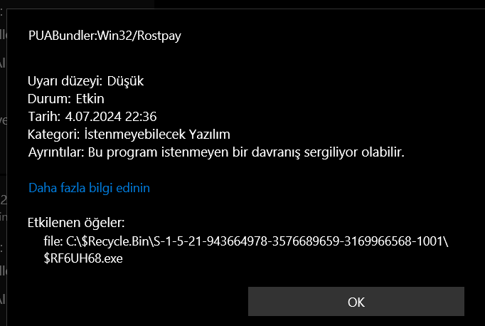 Öncelikle merhaba, rowaccel diye mouse ile alakalı bir program indirdim ve indirdiğim anda virus tehdit korumasından rostpay adlı bir tehditin olduğunu söyledi.