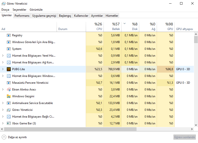 Resimde gördüğünüz gibi PUBG Lite maç esnasında GPU %100 oluyor. Bilgisayara herhangi bir zararı olur mu?