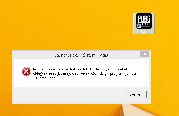 PUBG Lite 'api-ms-win-crt-stdio-l1-1-0.dll' Hatası