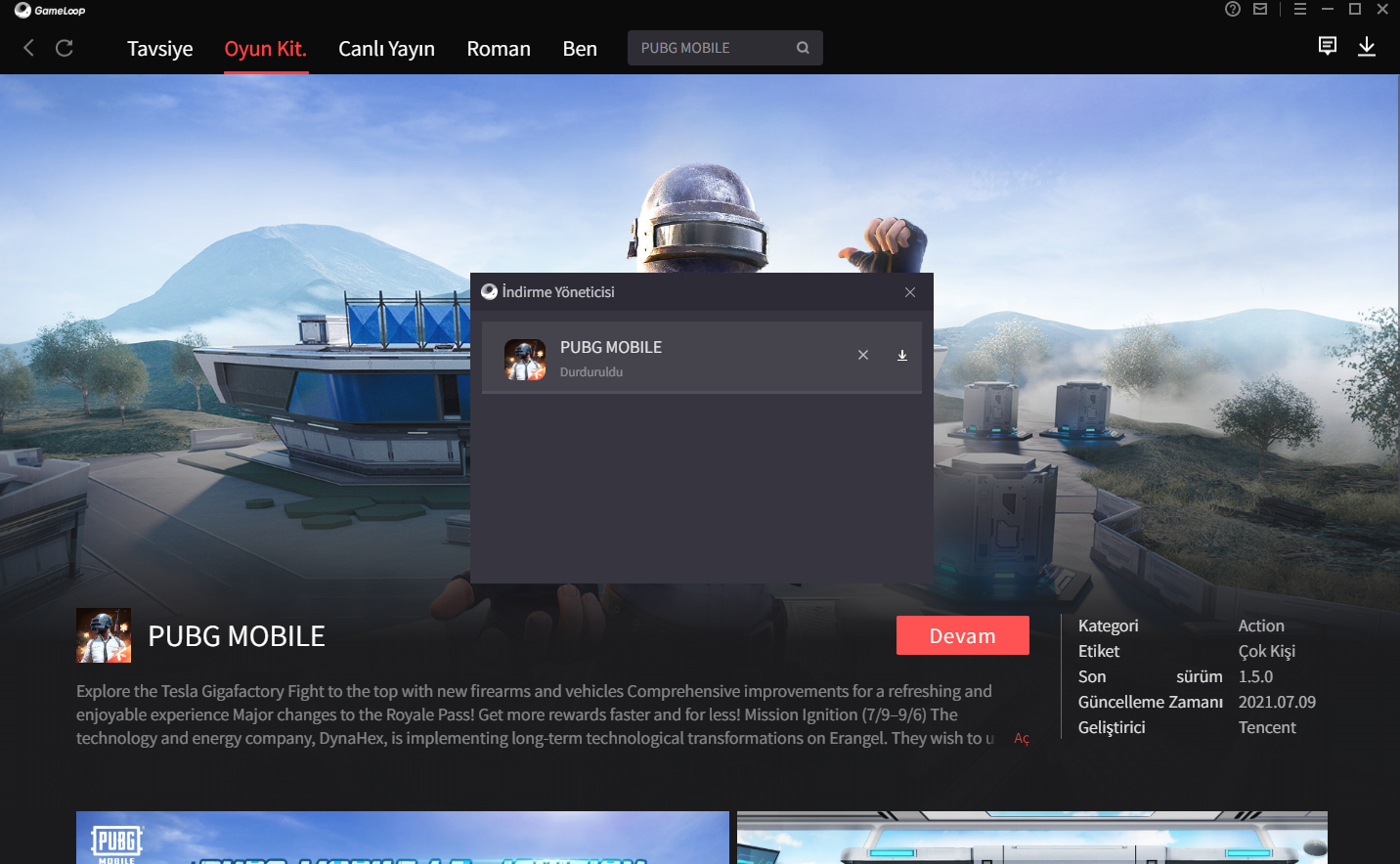 Oyuna en son gelen güncellemede güncelleme yaparken virüs algılandı diye bir hata aldım. Daha sonra GameLoop ekranında PUBG Mobile aç tuşuna basıyorum, tepki vermiyor. GameLoop'u silip baştan yükledim, aynı sorun oldu. Oyunu kaldır dedim ve şu an da böyle kaldı. Devam desem de bir şey olmuyor.