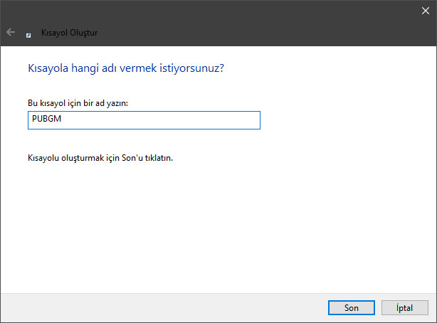 İleri deyip yeni gelen pencereye PUBGM yazıp Tamam'a tıklayın!