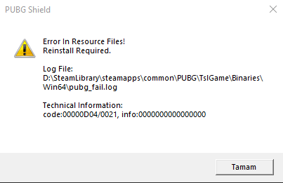 Merhaba. PUBG Steam bir anda oyundan atıyıor. Verdiği hata görselde mevcut nasıl fixlerim?