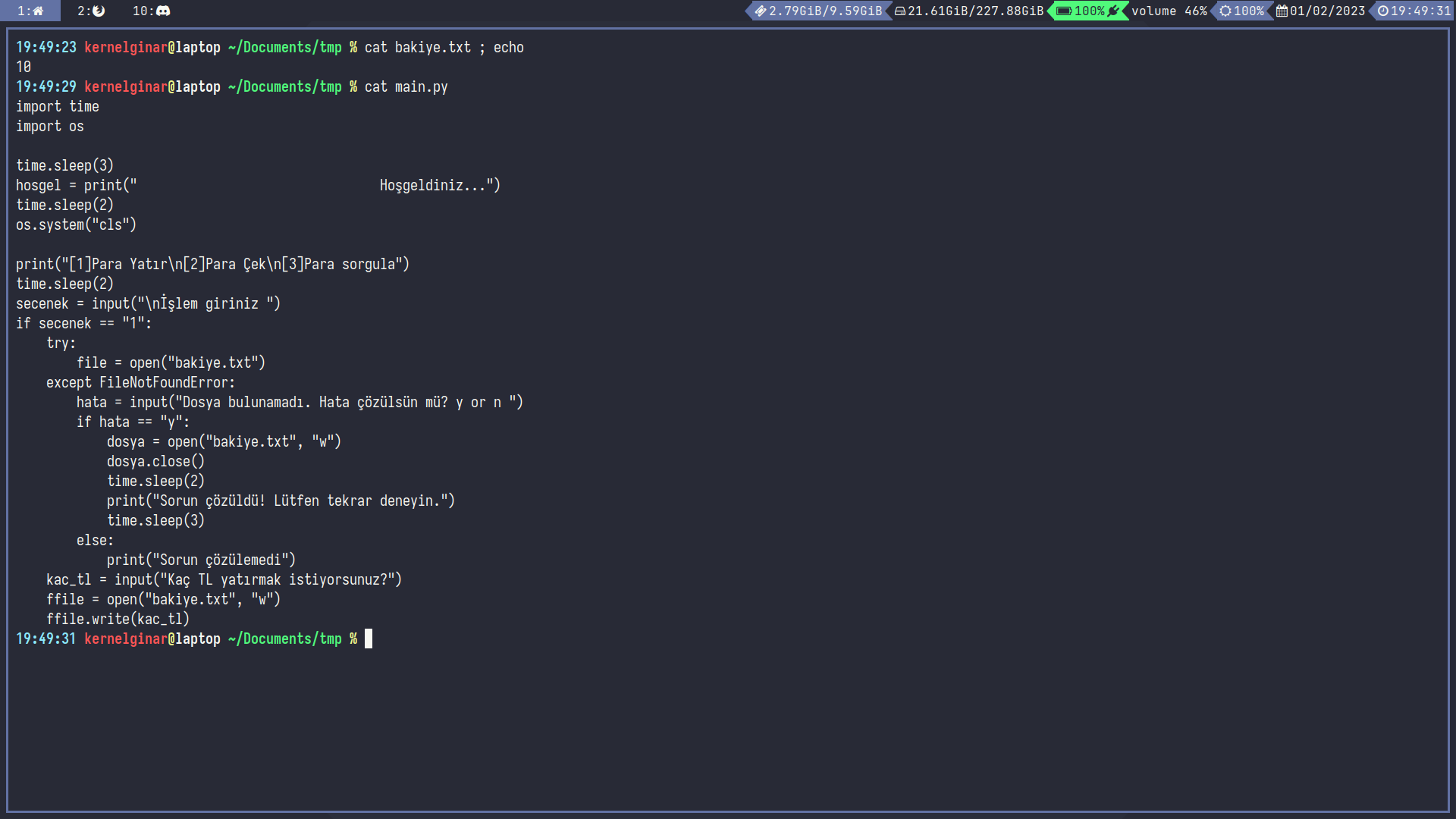Dosyayı dizin içerisinde oluşturup "a" argümanı ile kodu çalıştırırsanız her input'tan gelen değer dosya silinmeden dosyaya eklenir.