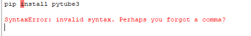 Siz hatayı, bu komutu python konsoluna yazarak yapıyorsunuz. Kodu normal, boş bir terminale yazmanız gerekiyor. Windows kullanıyorsanız CMD'ye, Linux kullanıyorsanız da Terminal'e yazmalısınız. MacOS kullanıyorsanız oradaki ismini bilmiyorum.