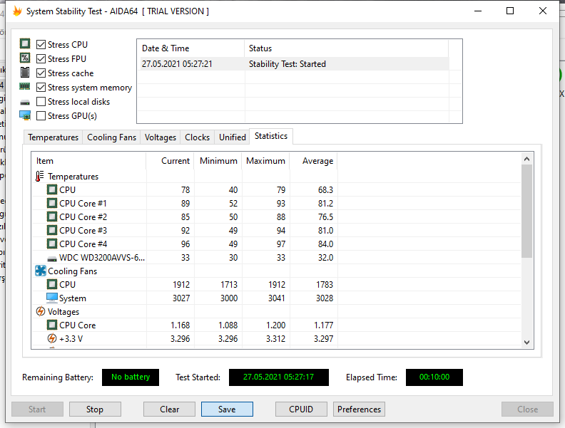 Benim için yeterli bile işlemci stress testimin 10 dk lık fotosunu paylaştım bana değerler iyi gibi geldi sizce yüksek mi? Fikriniz nedir? Avarage kısmını her dakika takip ettim en fazla 68.3'ü gördü.