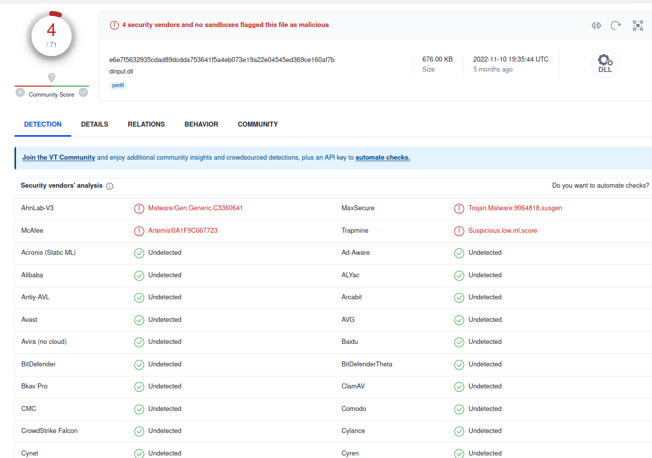 VirusTotal'de şuna benzer sonuçlar çıkıyor: