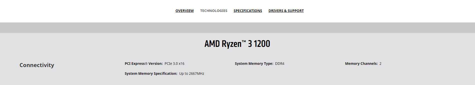 İşlemci: Ryzen 3 1200 (2667 MHz'e kadar bellek desteği)