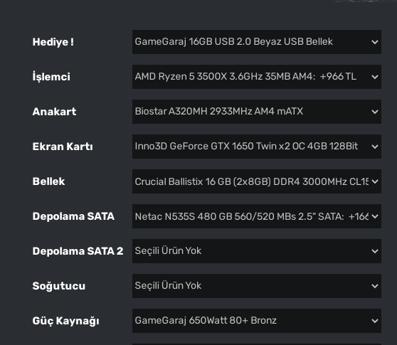 Eğer cidden 1650 isterseniz geliştirmeler yapılabilir bunun gibi seçin 6356 oluyor evet ama 1650S'den fedakarlık yaparsanız böyle bir sistem alabilirsiniz kasası iyidir.